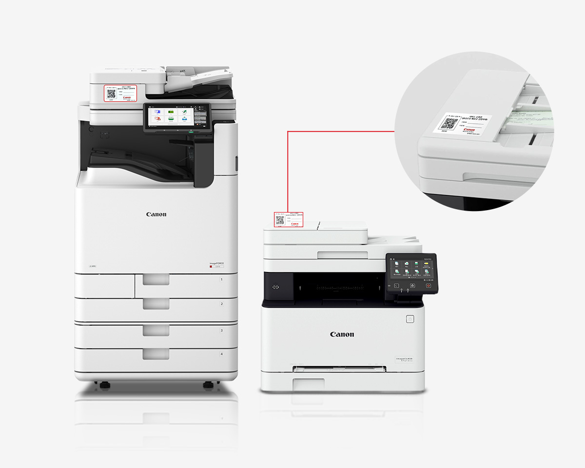 1. 복합기 전면 또는 상단에 부착된 QR코드 라벨을 확인해 주세요.